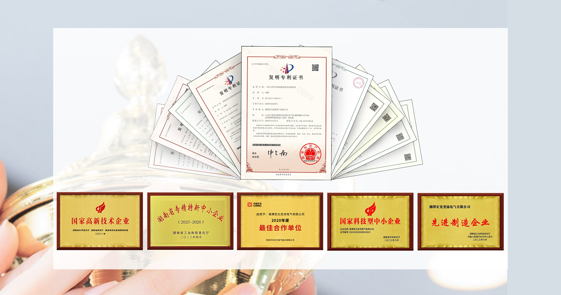 技術(shù)為企業(yè)的第一生命力,公司秉承“專業(yè)、誠(chéng)信、發(fā)展、卓越”的經(jīng)營(yíng)理念,始終重視研發(fā)投入和技術(shù)創(chuàng)新。公司先后被評(píng)為國(guó)家級(jí)高新技術(shù)企業(yè)和湖南省專精特新小巨人企業(yè),現(xiàn)有各項(xiàng)專利20多項(xiàng),其中發(fā)明專利4項(xiàng),公司自主研發(fā)的“ZHS-460KA大功率整流器”榮獲湖南省首臺(tái)套科技獎(jiǎng)和省級(jí)自然科學(xué)基金獎(jiǎng)。